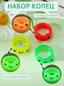 кольцо лягушка светящееся в темноте набор из 3 колец