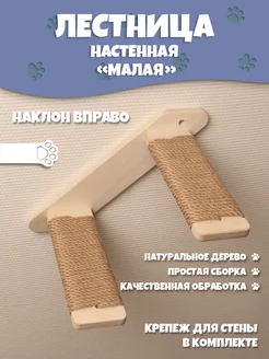 Лестница малая для кошек настенная с джутом, наклон вправо