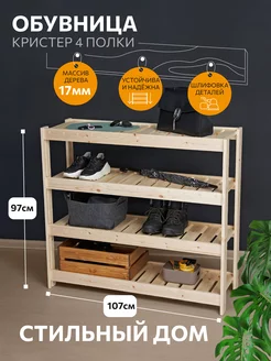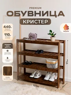 Обувница широкая деревянная 97*107*36 см 4 полки