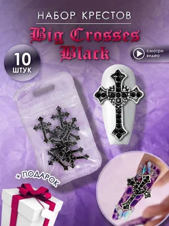 Металлические фигурки для дизайна ногтей кресты со стразами