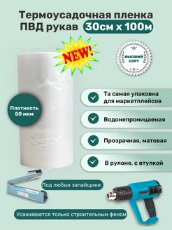 Термоусадочная пленка 30см, упаковка ПВД рукав 50 мкм