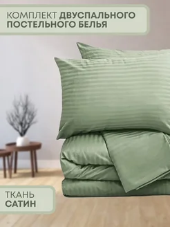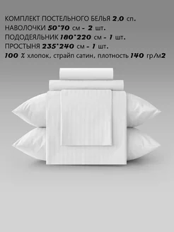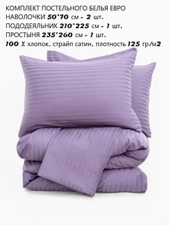 Постельное белье семейное страйп сатин с 2 пододеяльниками