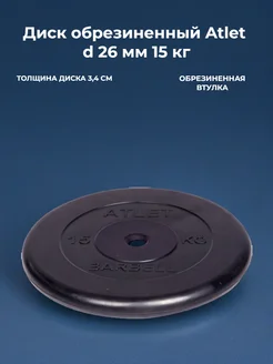 Диск для штанги, блин обрезиненный 15 кг 26 мм Atlet