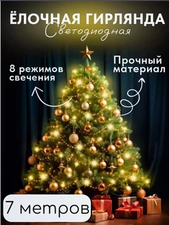 Гирлянда новогодняя для украшения на елку и окно уличная 7м