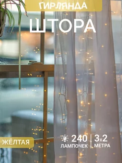 Гирлянда штора 3х2 м желтая новогодняя на окно занавес