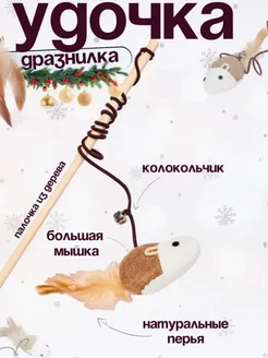 Удочка для кошек деревянная с мышкой