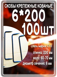 Скоба строительная 6мм х 200мм 100 шт