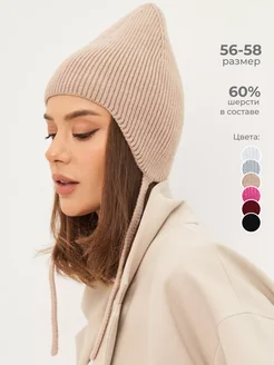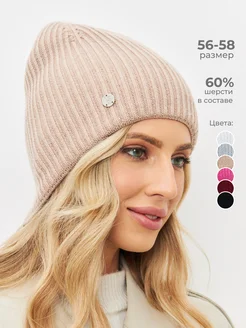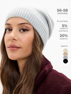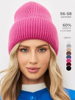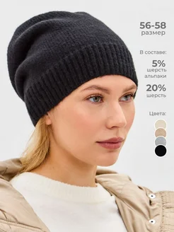 Шапка вязаная без отворота бини осенняя-весенняя шерсть