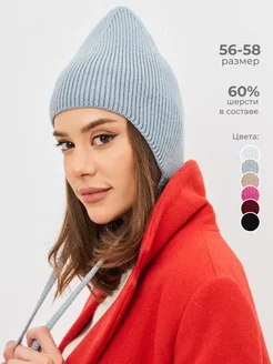Шапка вязаная с разрезом сзади бини осенняя-весенняя