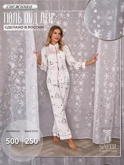 Новогодний тюль с снежинками 300х250 в гостиную спальню