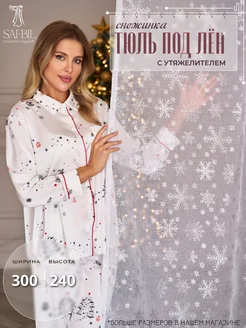 Тюль под лён в гостиную 400х250 новогодний с снежинками