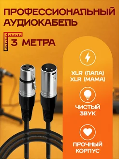 Кабель для микрофона XLR (M) - XLR (F) аудиокабель 3 метра