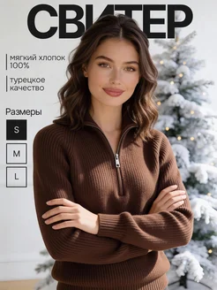 Свитер вязаный оверсайз на молнии теплый большие размеры