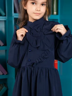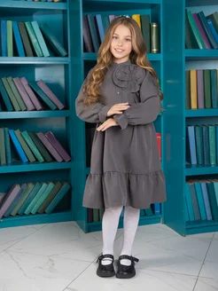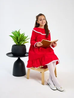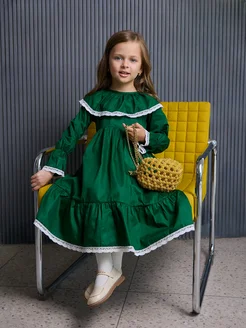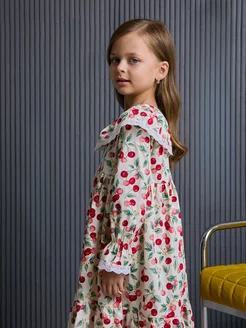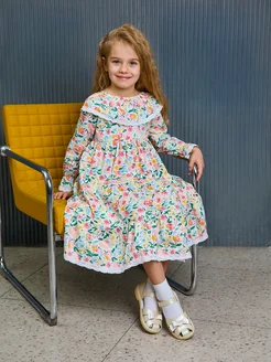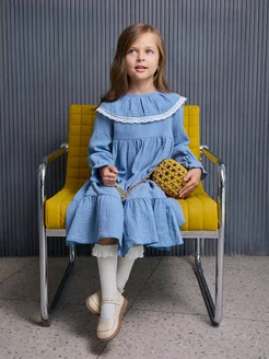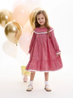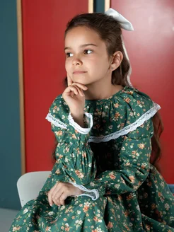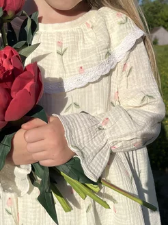 Муслиновое платье в садик с длинным рукавом и кружевом