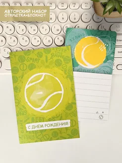 Открытка с днем рождения и магнит блокнот. Спорт Теннис