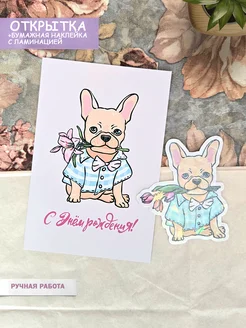 Авторская открытка с днем рождения с французским бульдогом