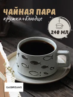 Чайная пара чашка с блюдцем Рыбки Новый год
