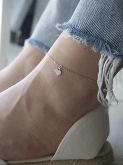Браслет серебряный на ногу. Анклет "Сердце"из серебра 925