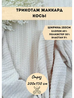 Ткань трикотаж жаккард "косы" бежевый, 250 г м², 3 м
