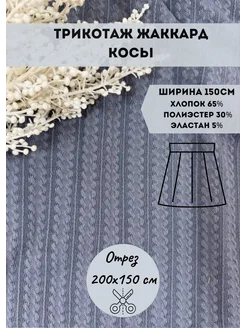 Ткань трикотаж жаккард "косы" серый, 250 г м², 2 м