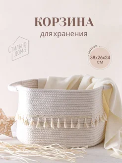 Плетеная корзина для игрушек и детских вещей с вышивкой