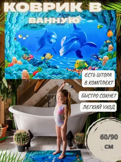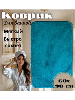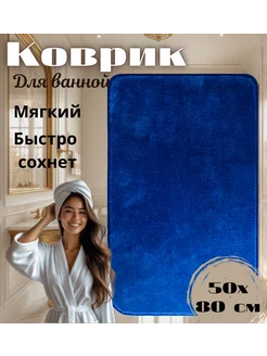 коврик для ванной, быстросохнущий, синий, 60х90 см