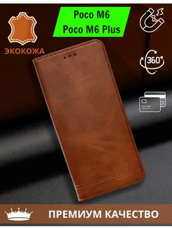 Чехол книжка на POCO M6, POCO M6 Plus (коричневый)