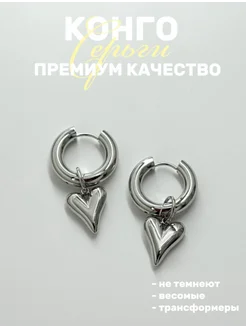 Серьги конго с сердцем трансформеры кольца бижутерия