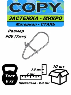 Застежка-карабин рыболовная Микро #00 - 7мм (10шт)