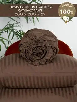 Простынь на резинке 200х200 сатин-страйп 100% хлопок