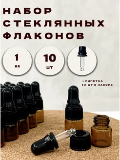 Стеклянный флакон с пипеткой для эфирных масел 1 мл 10 шт