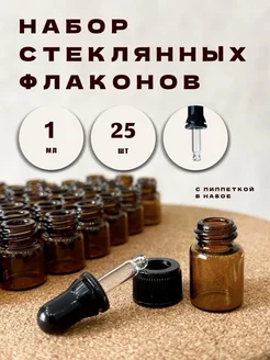 Стеклянный флакон с пипеткой для эфирных масел 1 мл 25 шт