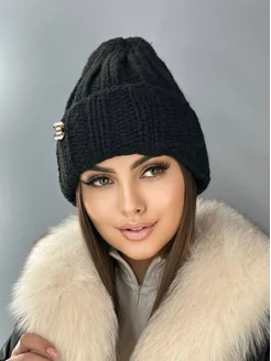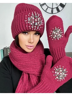 Комплект из шапки, шарфа и варежек зимний вязанный