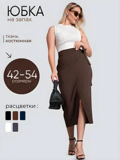Юбка на запах миди с разрезом офисная