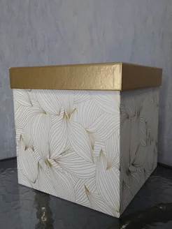 Коробка подарочная квадратная 20х20х20 см. Золотые лепестки