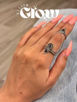 Кольцо двойное с цепочкой с гранатом
