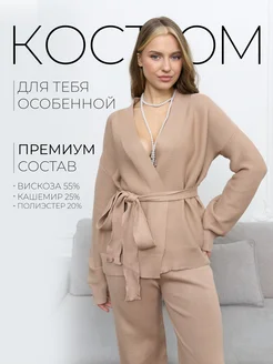 Костюм вязаный с брюками и кардиганом