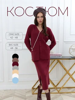 Костюм трикотажный вязаный с юбкой и кардиганом