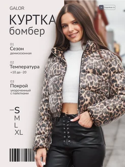Куртка бомбер укороченная осень леопардовая