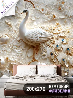 Фотообои 3D Золотой павлин в цветущем саду 200х270