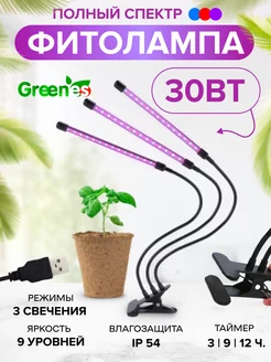 Фитолампа для растений полного спектра 30 Вт USB