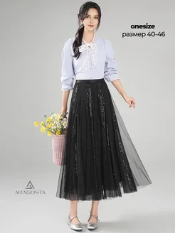 Юбка сетка из фатина с пайетками миди