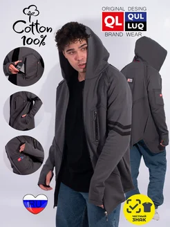 Толстовка на молнии с карманами и капюшоном в рваном стиле