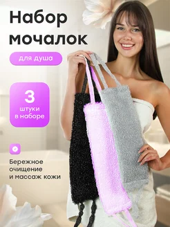 Мочалка для душа и тела жесткая с ручками набор 3 шт