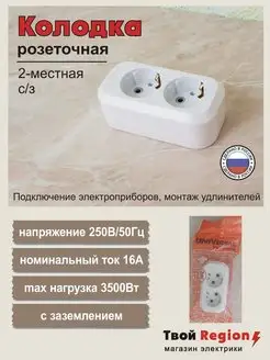 Колодка розеточная для удлинителя 2-местная с заземлением
