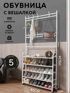Обувница с вешалками и полками в прихожую шкаф для обуви