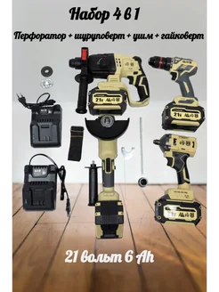 Набор 4 в 1 Аккумуляторный 21В 6 ампер