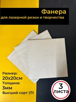 Фанера для лазерной резки 20х20, высший сорт, 3 листа