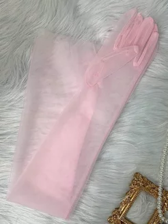 Перчатки прозрачные длинные из фатина в сетку на вечеринку