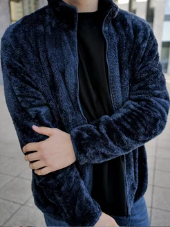 Толстовка плюшевая зипка кофта синяя флиска овер